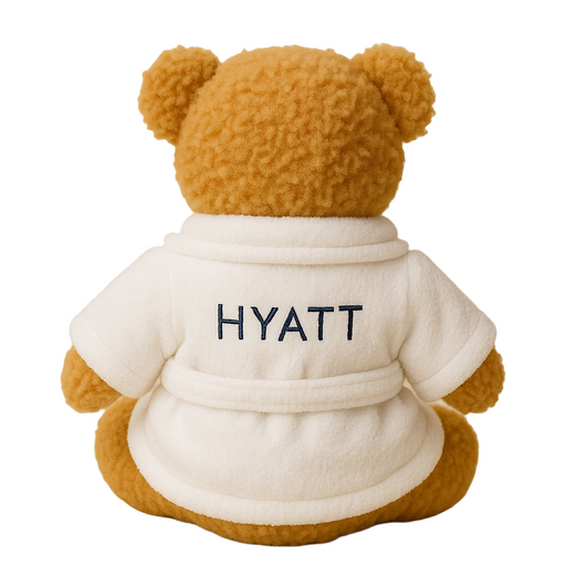 Custom branded velour plush bear in a cosy bathrobe—perfectly embroidered with your logo or text to create a warm aesthetic delight and a lasting b...